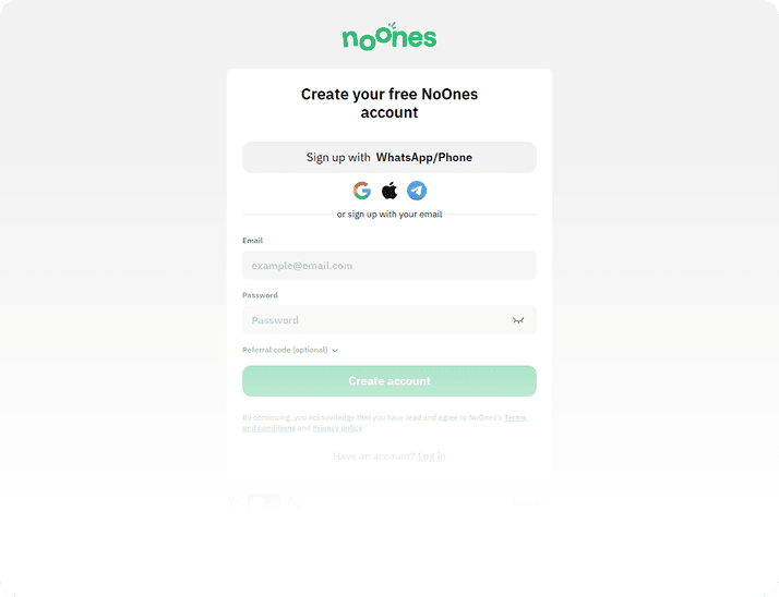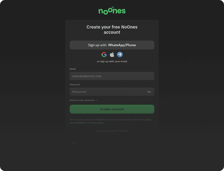 Create your NoOnes account and log in